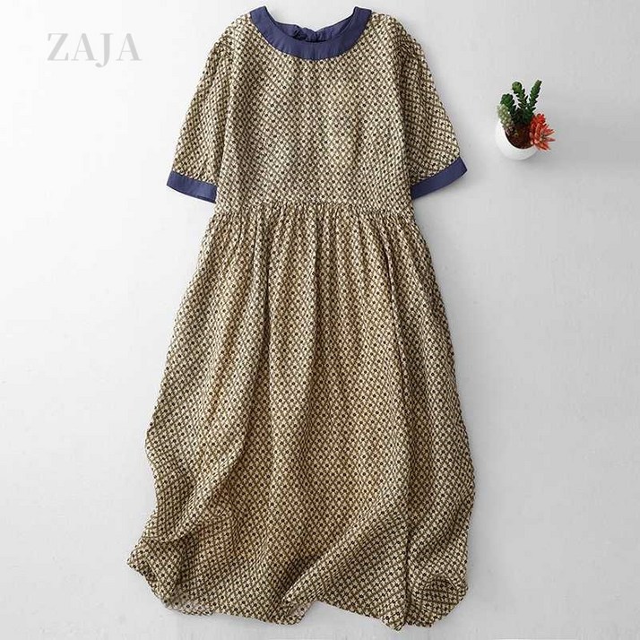 ZAJA 여성 여름 라운드넥 원피스 루즈핏 편한 외출용 롱원피스