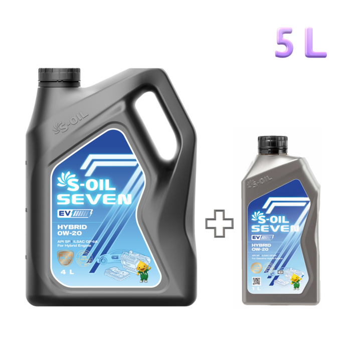 에스오일 세븐 EV 하이브리드 엔진오일 0W20 4리터1리터 총 5리터 세트, 5L, 0w20, 1세트