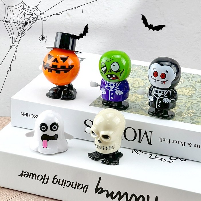 이지유 할로윈 태엽 장난감 세트 가챠 피규어 인형 통통이 유령 호박 해골 파티 소품 어린이날 선물, 5종, A세트
