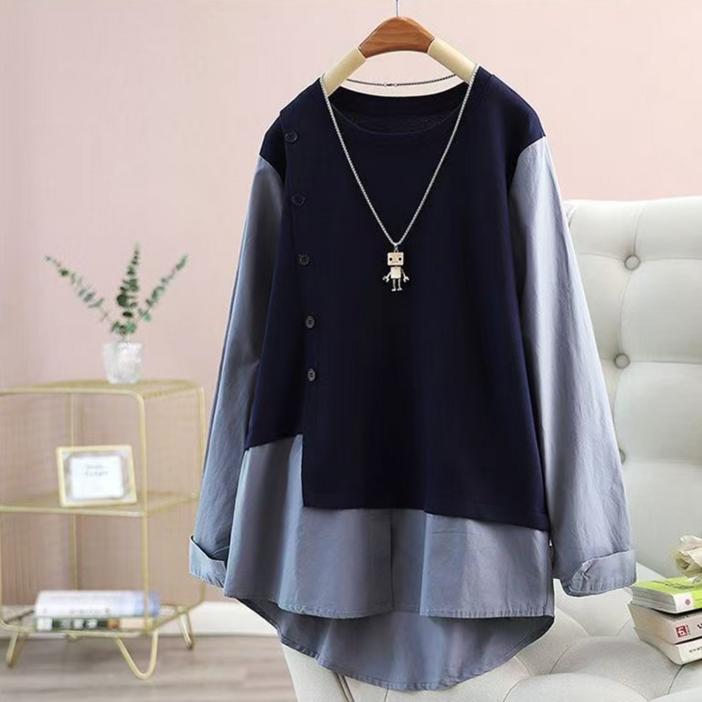 오스틱니코디하기 좋은 150kg까지 레이어드 여성 긴팔 셔츠 가을 편한 간절기 루즈핏 얇은 이너 레이어트 여성용 맨투맨 티셔츠 심플 BF 오피스룩 오버사이즈4xl 박스데일리상의