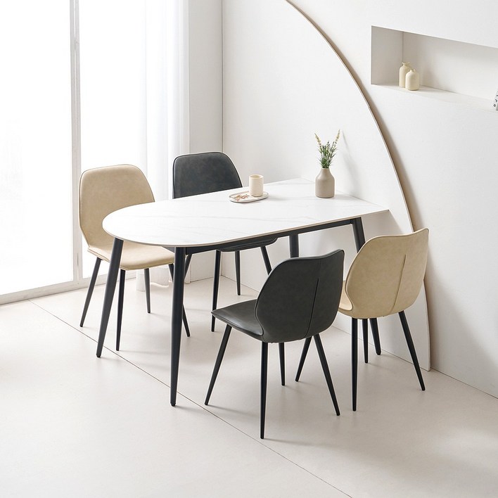 라로퍼니처 쿠키 1350 반 타원 포세린 통 세라믹 블랙 스틸 프레임 식탁 세트 식탁의자4