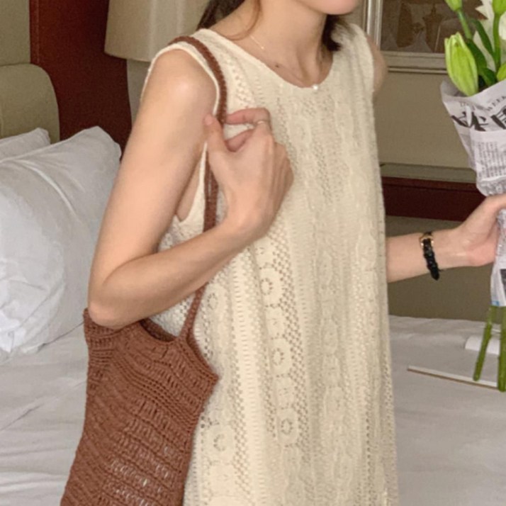 여름 나시 펀칭 원피스 휴양지 바캉스 민소매 롱원피
