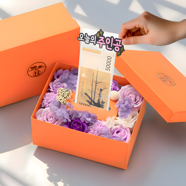 트렌빌 비누꽃 용돈박스 명품 선물상자 쇼핑백, 1개, 퍼플로즈