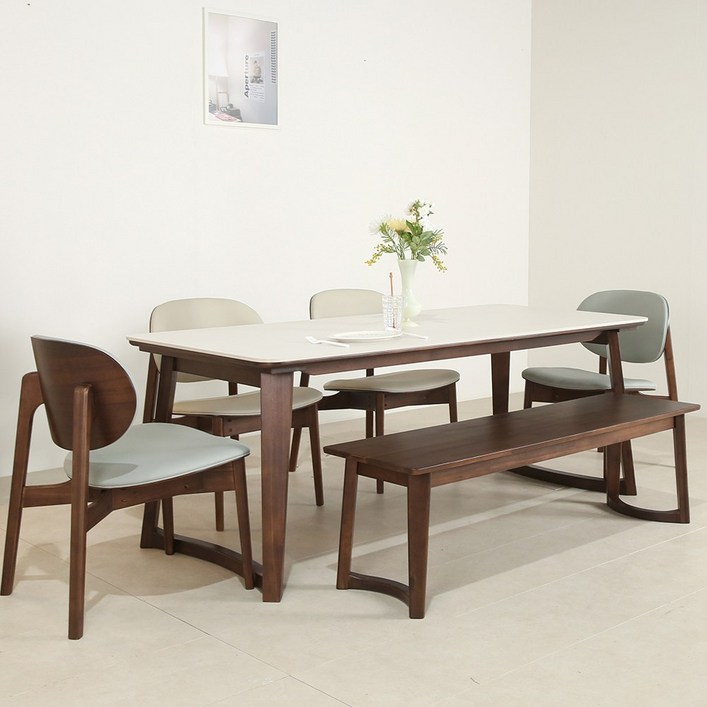 에런 아시아 월넛 원목 세라믹 포세린 4인용 6인용 식탁세트, 일반 3 벤치 1, 월넛