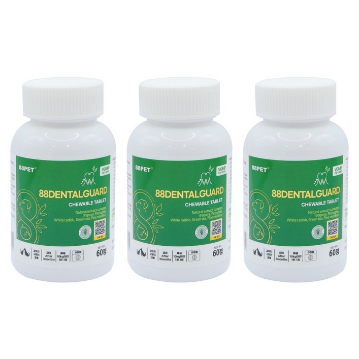 88펫 덴탈가드 츄정 잇몸 염증 치주염 구내염 입냄새 씹어먹는 강아지 고양이 정제형 구강영양제, 3개, 구강치석관리, 60정